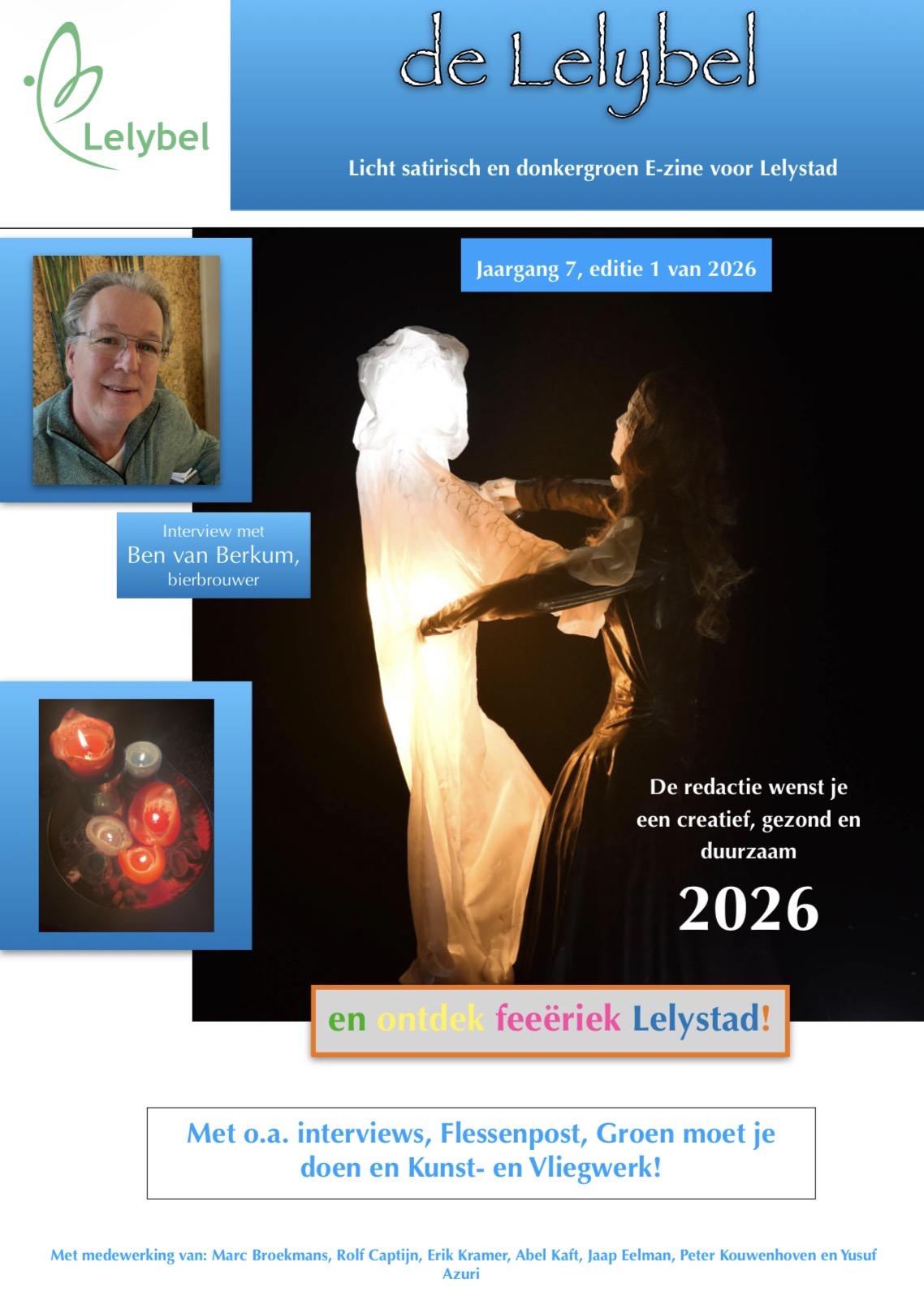 Maandelijks brengt de divers samengestelde redactie het blad uit, meestal aan de hand van thema’s. Door interviews met vooraanstaande en volkomen onbekende stadgenoten, fake news en met de thermometer middenin het bloeiende culturele leven. Daar wordt luchtige en soms onnavolgbaar verslag van gedaan. De rubrieken wisselen even vaak van onderwerp als de smaak van de redactie. Gratis door een select gezelschap van sponsoren die integriteit en het stadsbelang hoog in het vaandel hebben.